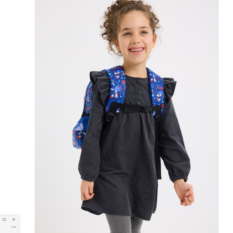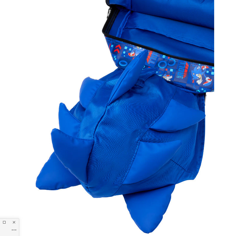 تأتي الحقيبة مع سوستة خلفية يوجد بها غطاء رئس للطفل علي شكل سونيك